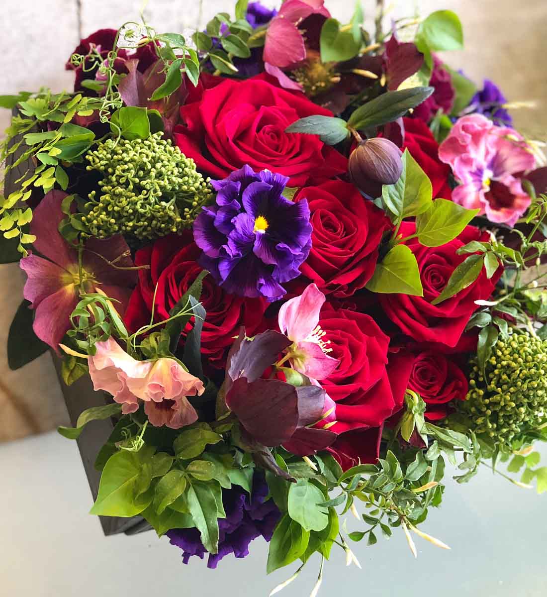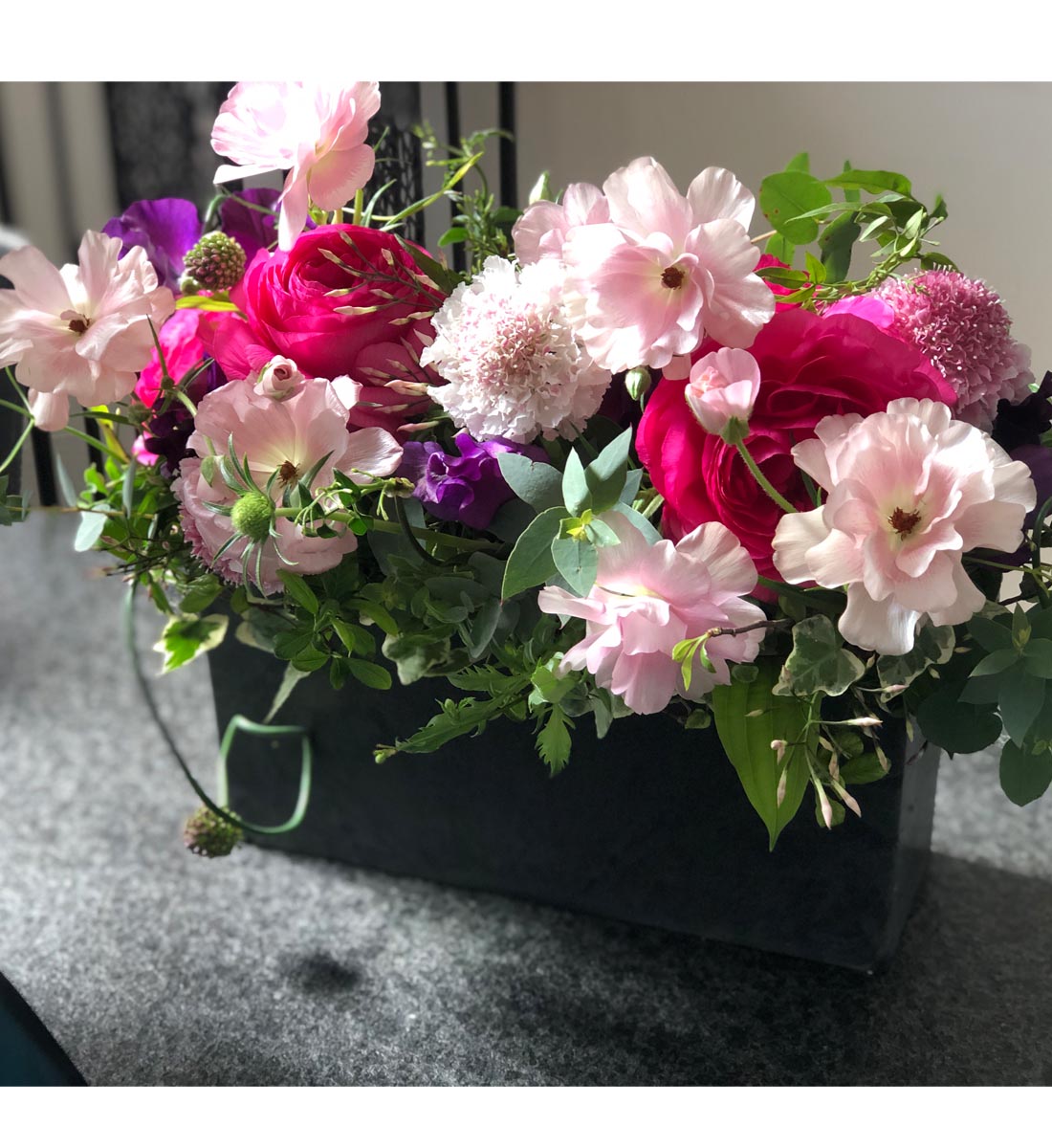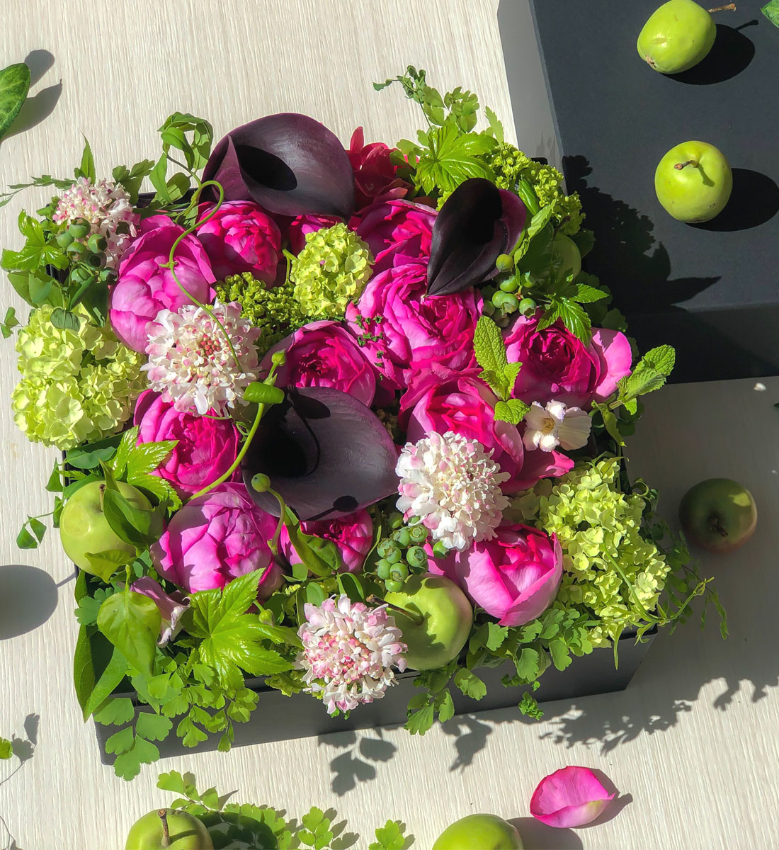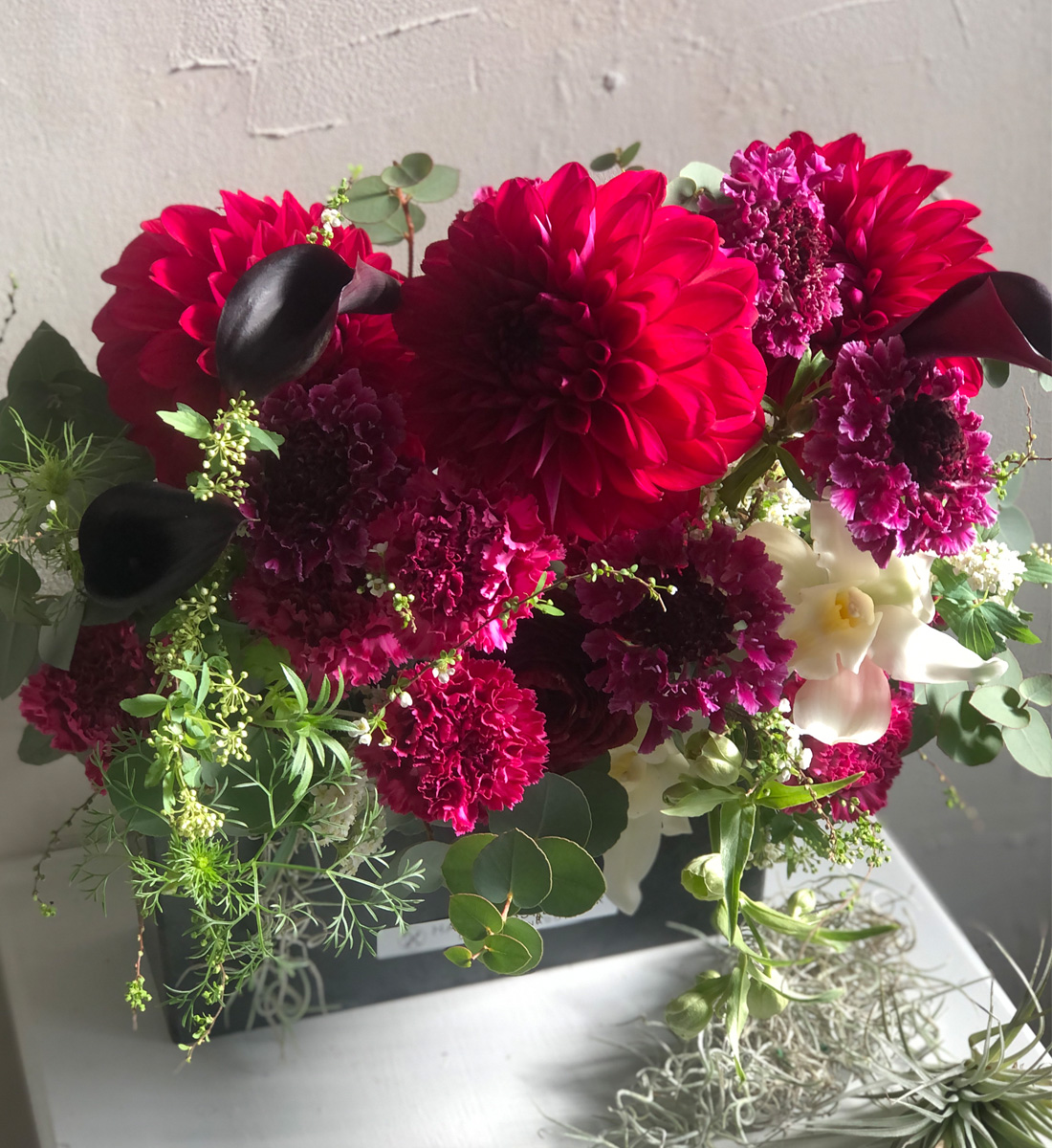 四角い箱の中は、贅沢に敷き詰められた綺麗な花々。箱を開けた瞬間に広がる心地よい香りのフレグランスと花の美しさが凝縮されたデザインのボックスフラワーは幸せ感いっぱいでサプライズギフトやスマートな花贈りに最適です。