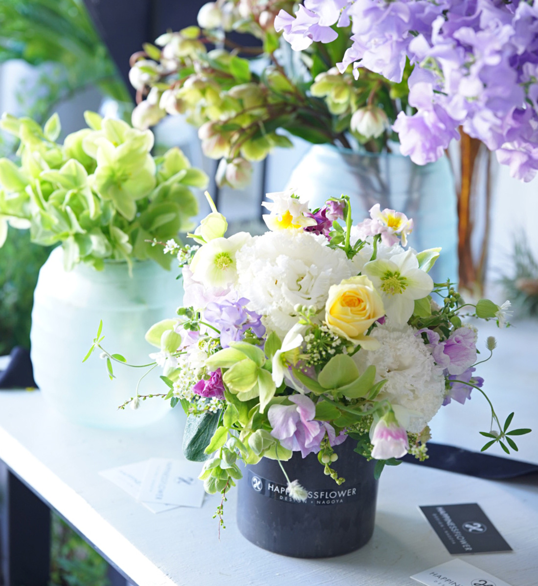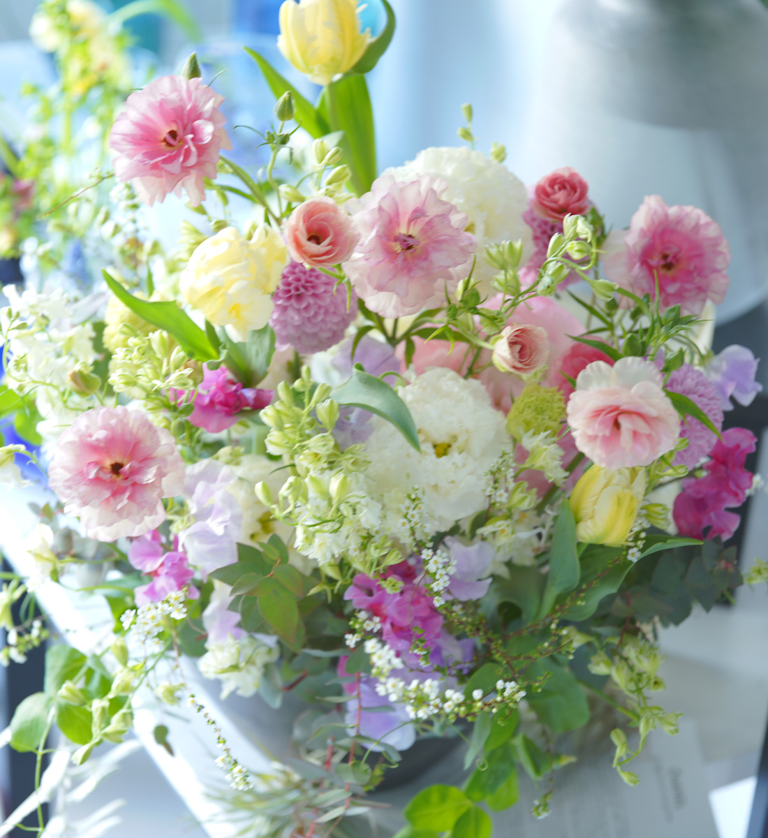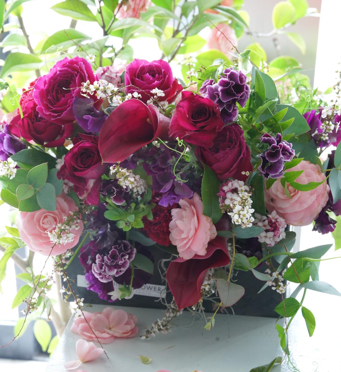 当店では季節の旬で一番お勧め出来るお花を使って綺麗なカラーパレットになるように構成させて頂いておりAdult・Soft・Gorgeous・HAPPINESSセレクトの4つのカラータイプからお選び頂けます。
