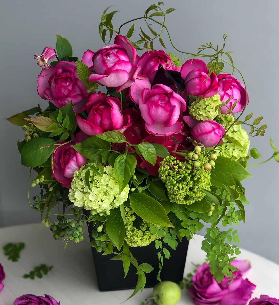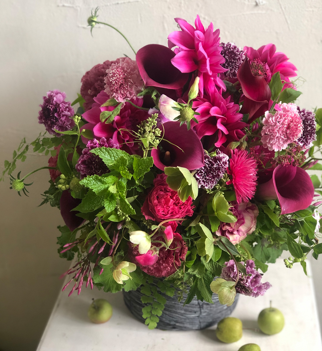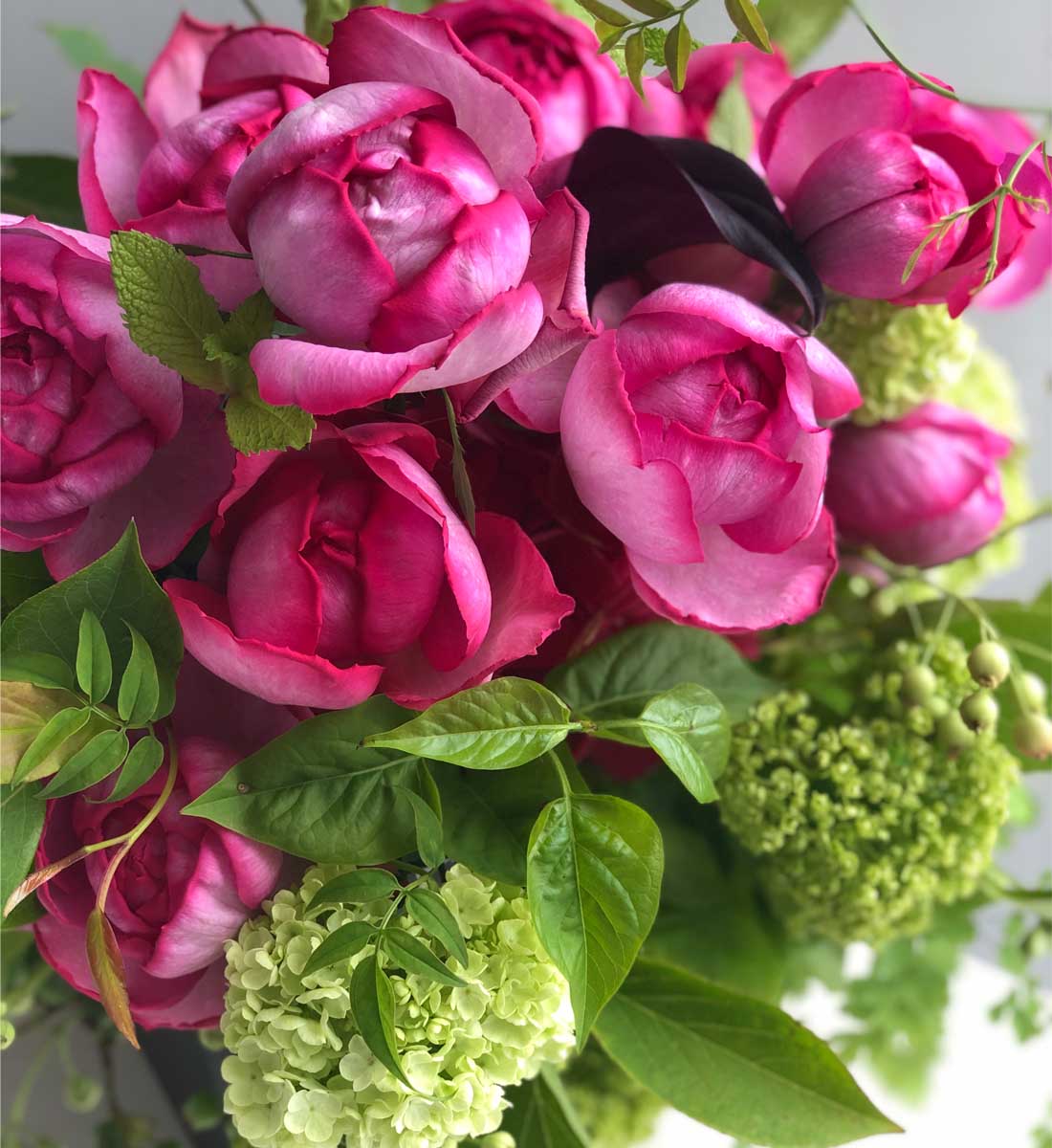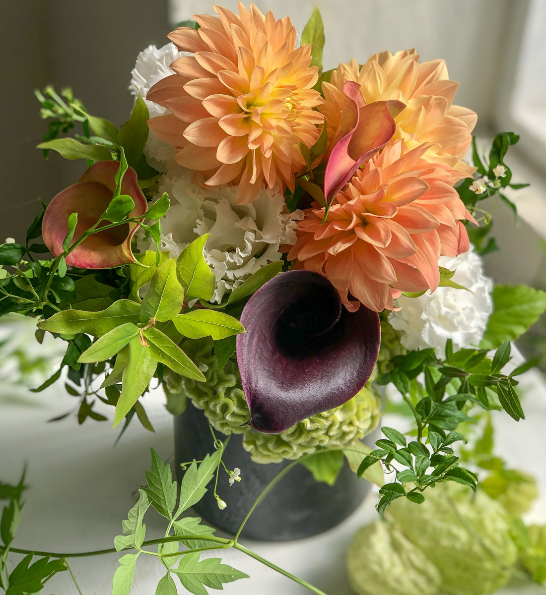 素材やサイズ感を合わせたコンポジションでデザインいたします。丸いスタイルでこんもりとアレンジされた花は、優しい印象でどんな場所でもマッチいたしますので、手土産などにも最適です。