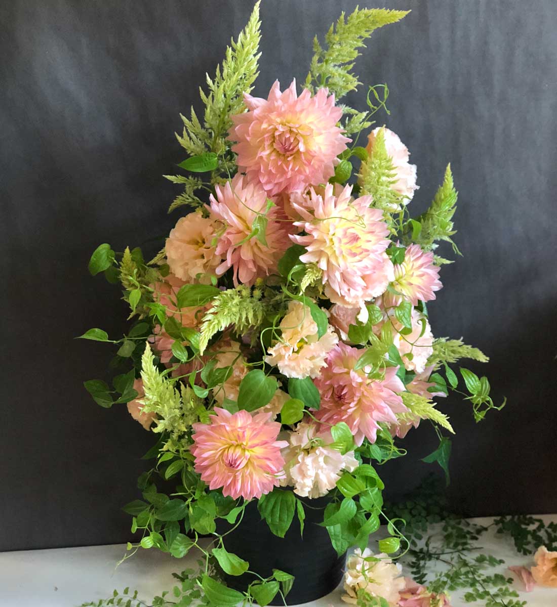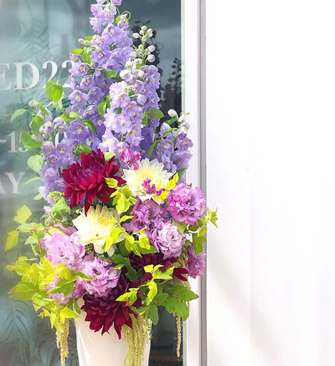 太陽を浴びて大きく育った花のステムを活かして作る縦長スタイルでアレンジされた花は、力強く優雅で豪華です。法人様向けのギフトや御供用の花としても人気で最適なスタイルです。