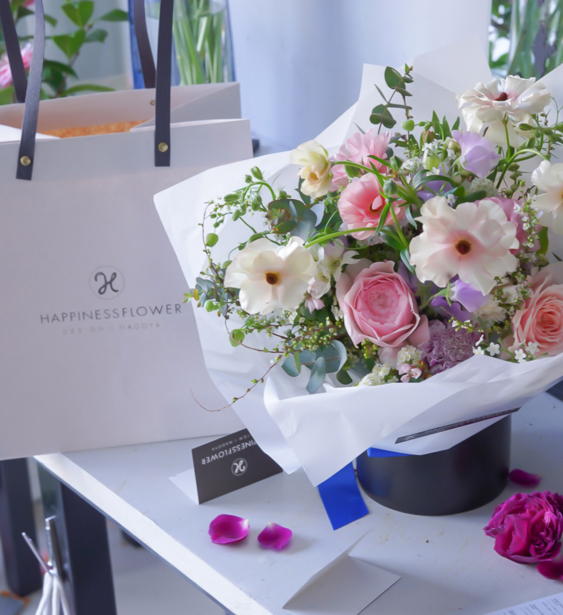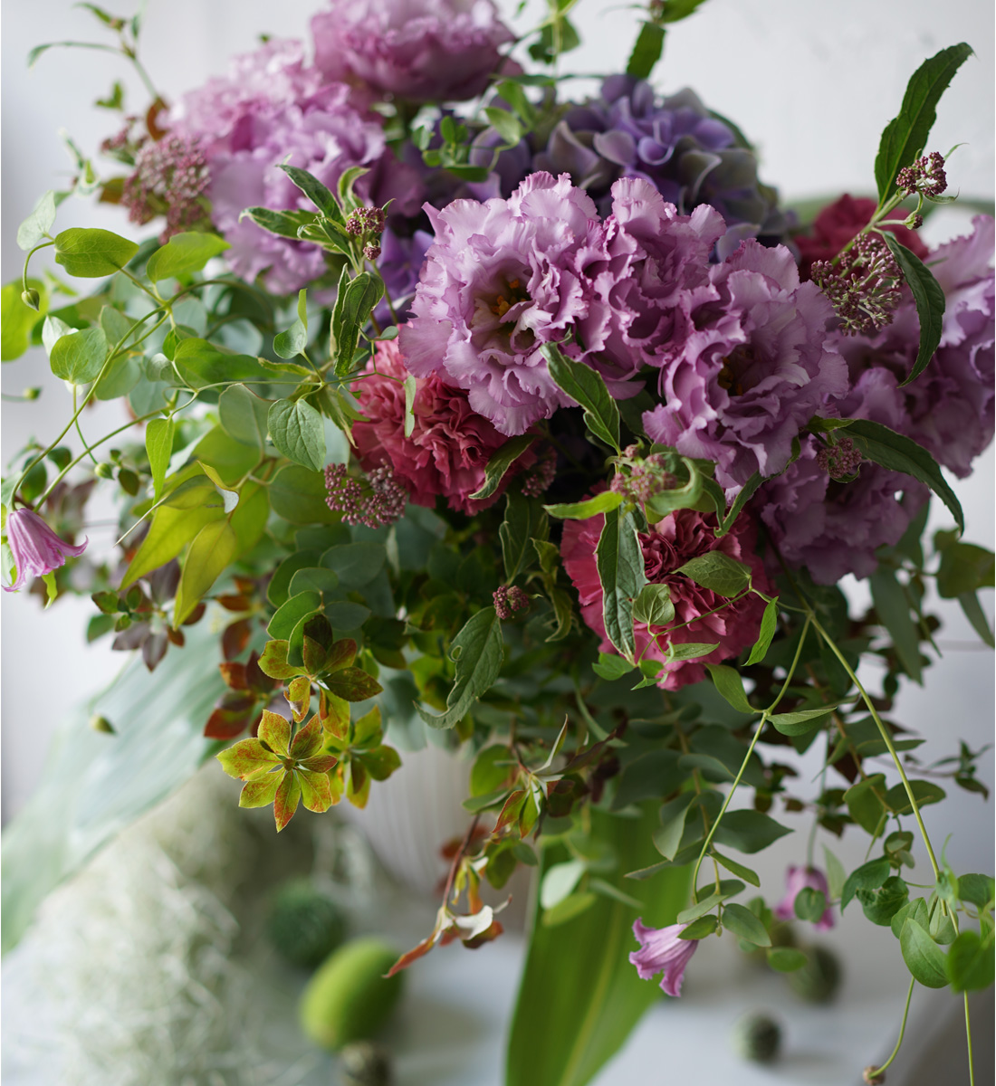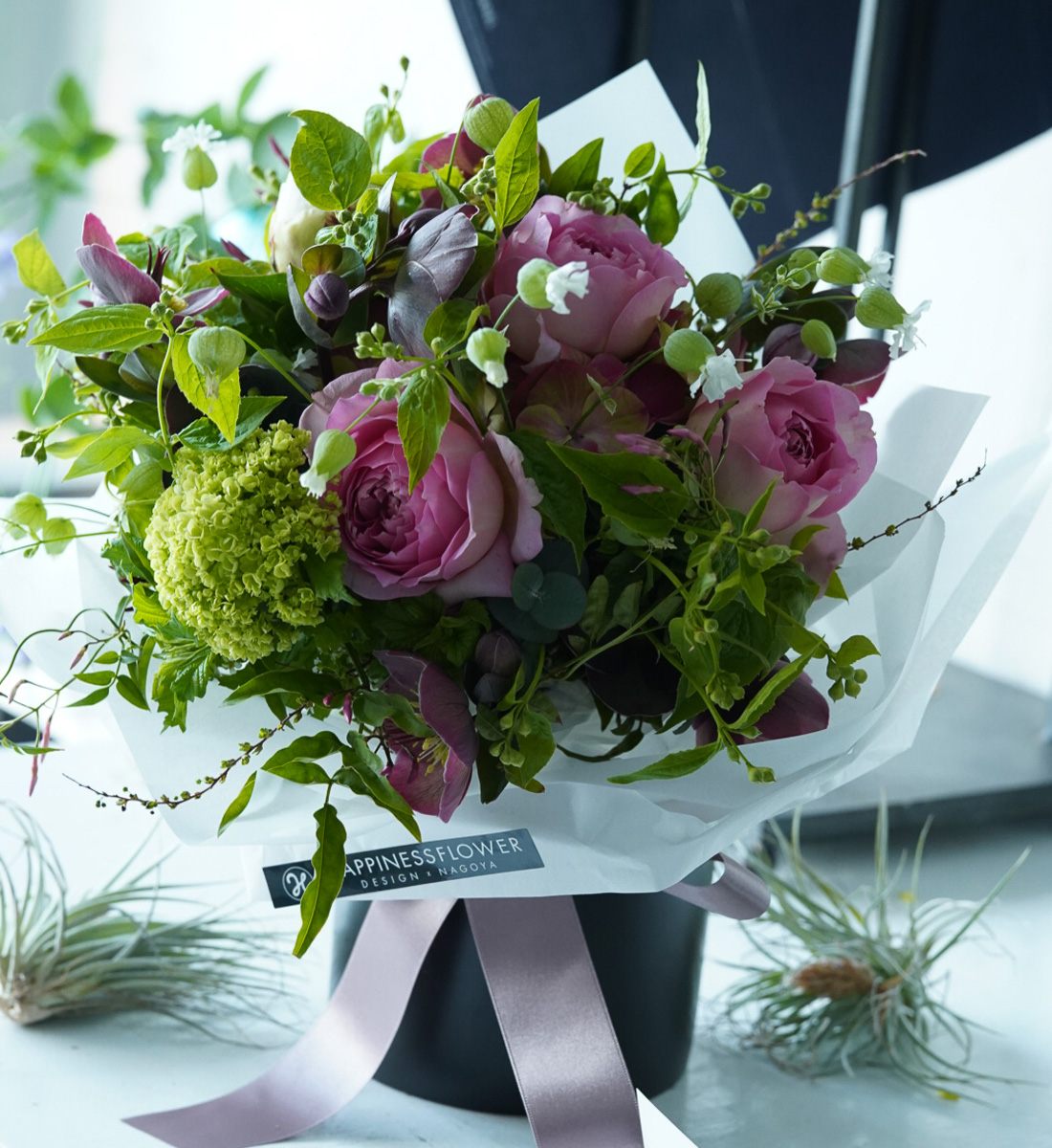 当店では季節の旬で一番お勧め出来るお花を使って綺麗なカラーパレットになるように構成させて頂いておりAdult・Soft・Gorgeous・HAPPINESSセレクトの4つのカラータイプからお選び頂けます。