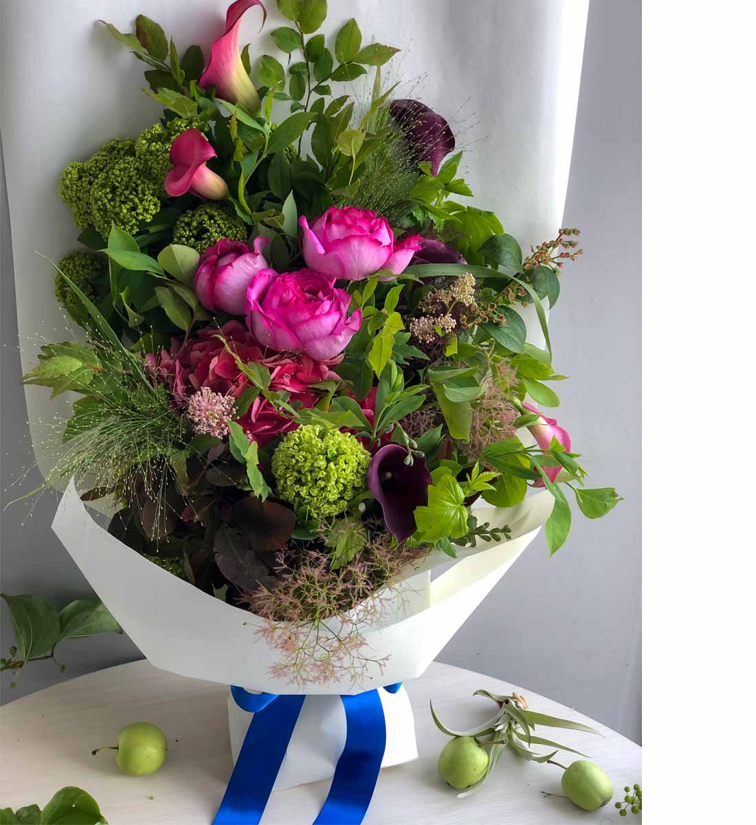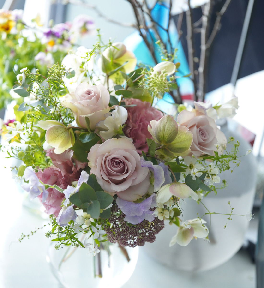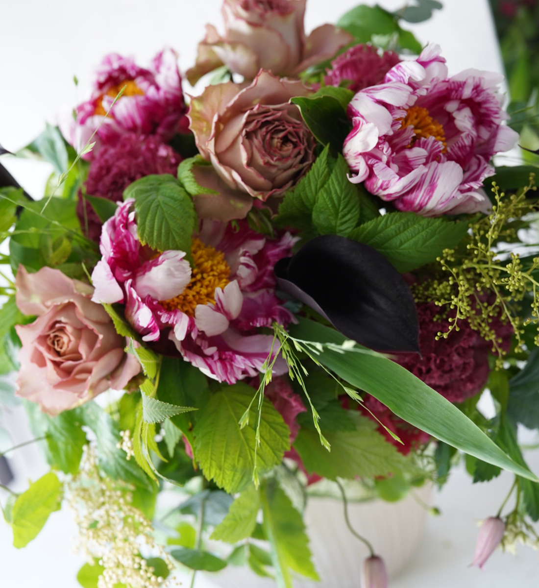 当店では季節の旬で一番お勧め出来るお花を使って綺麗なカラーパレットになるように構成させて頂いておりAdult・Soft・Gorgeous・HAPPINESSセレクトの4つのカラータイプからお選び頂けます。