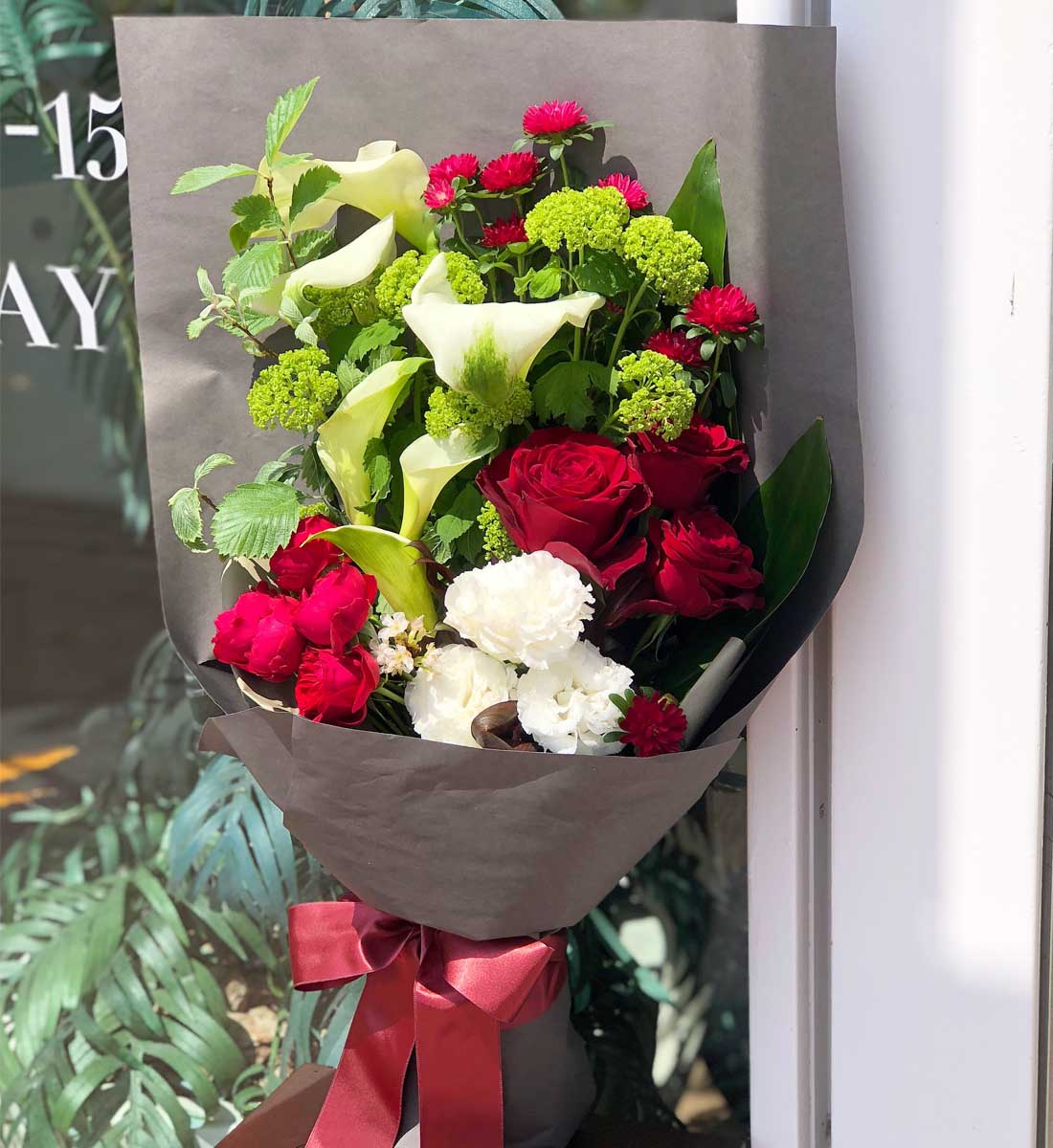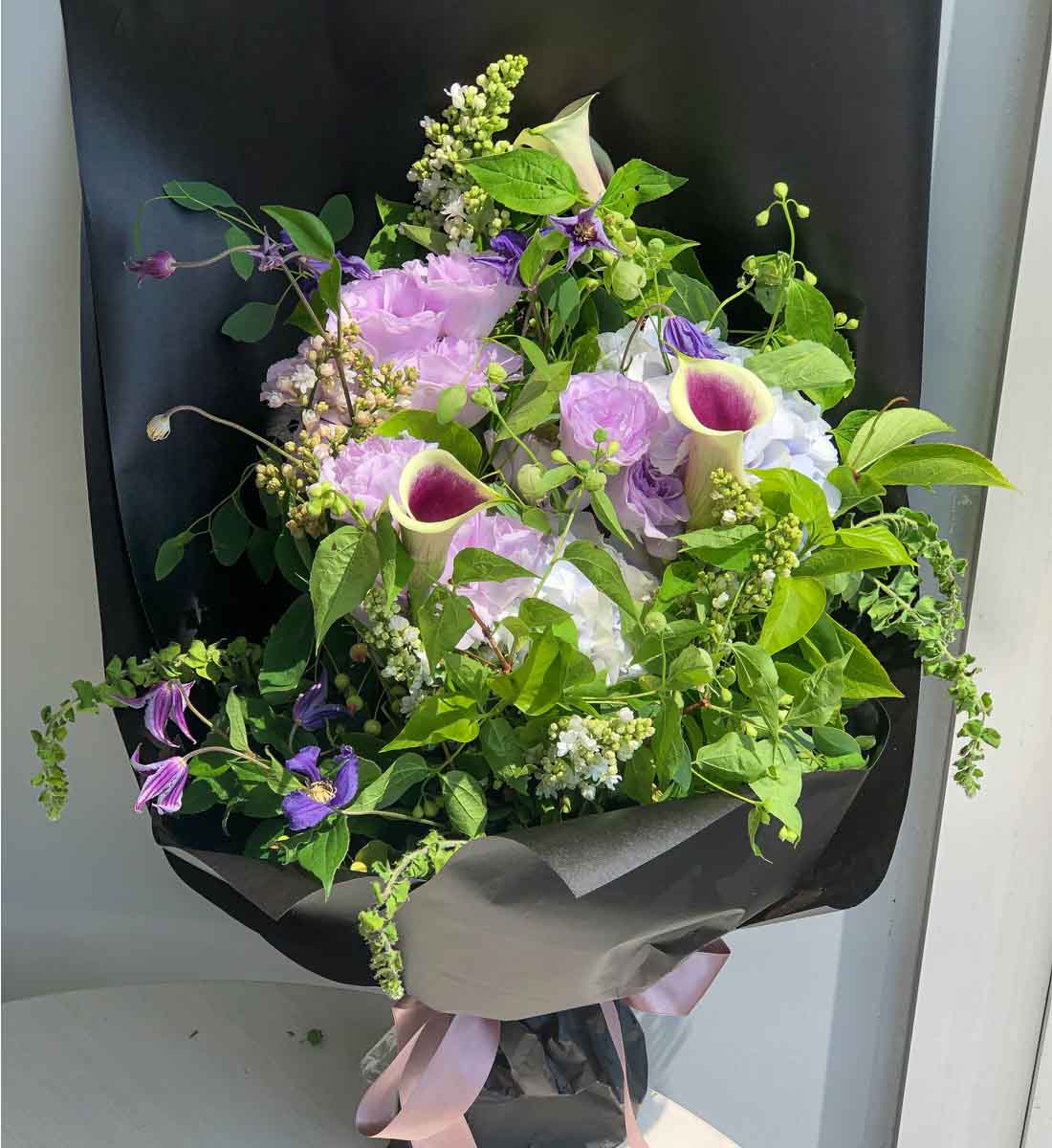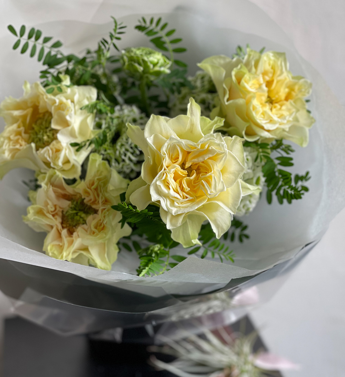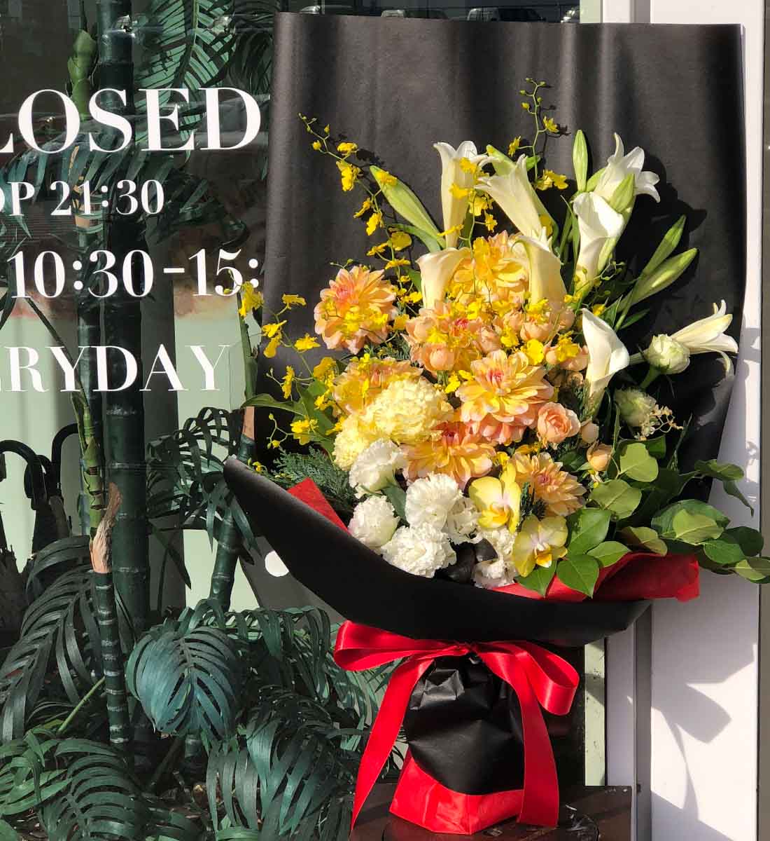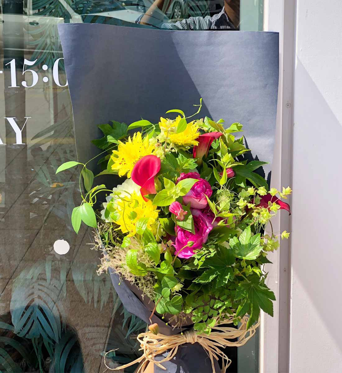 太陽を沢山浴び大きく育った花のステムを活かして作るbouquetは力強く、華やかでゴージャスな演出をしたいシーンなどにお勧めです。写真撮影などが行われる会社の送別会やコンサート会場演者様にお渡しするGIFTなどでは特に人気です。