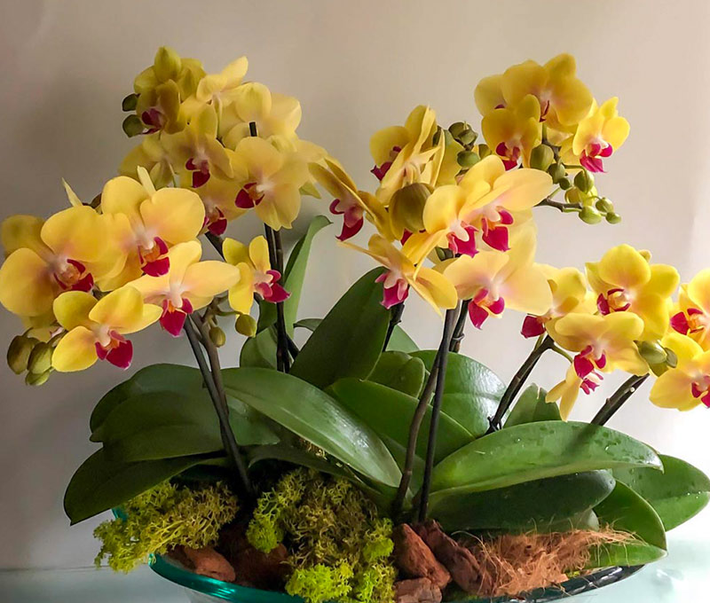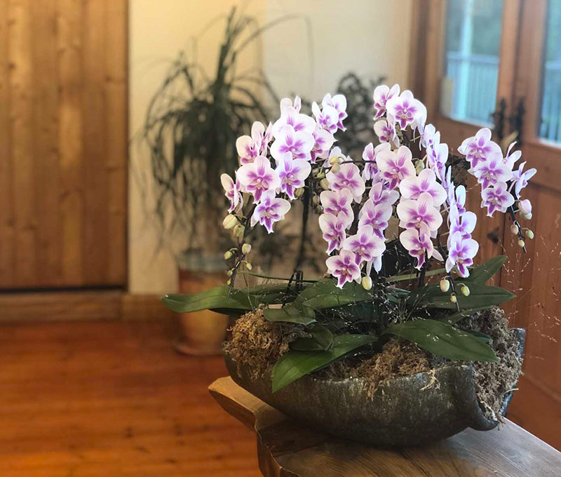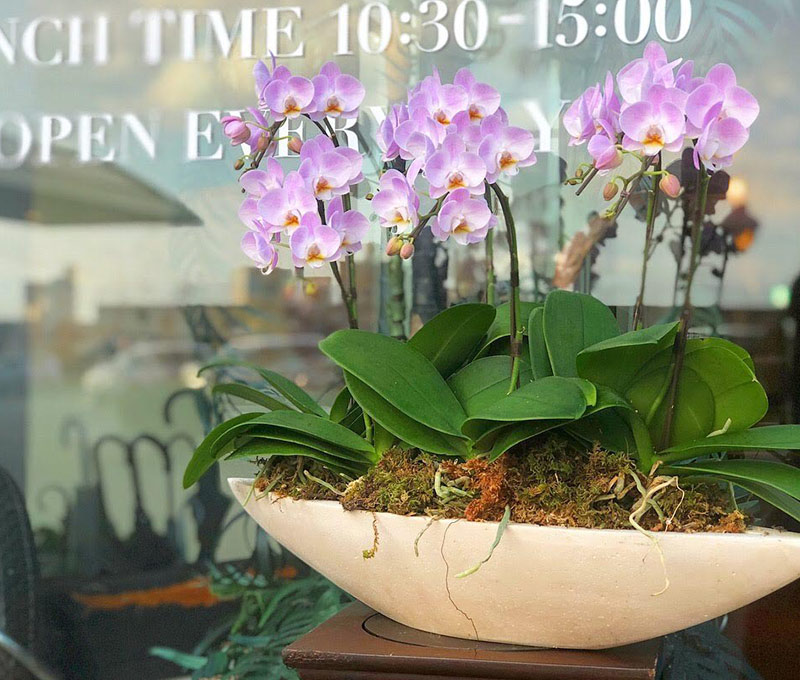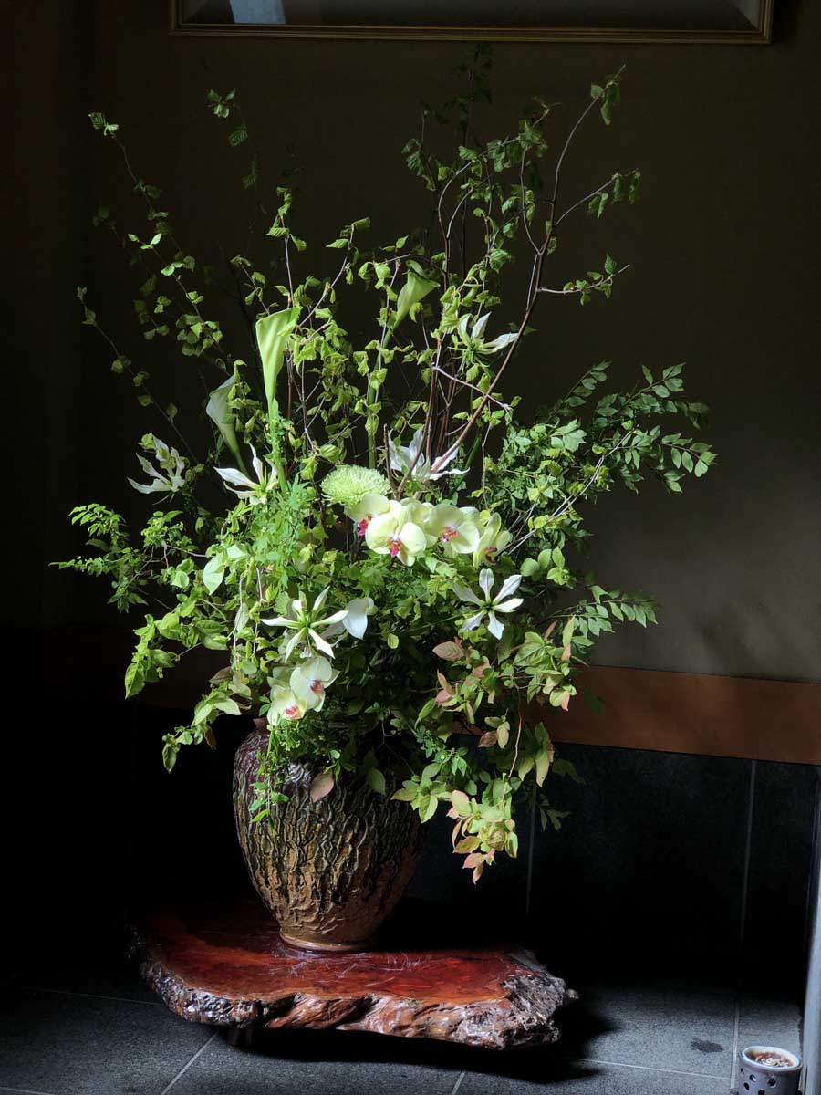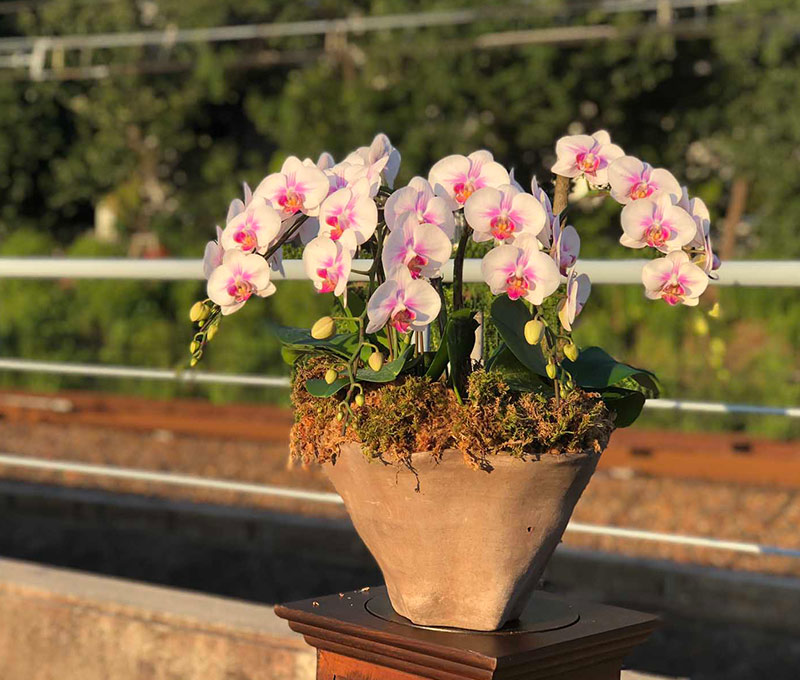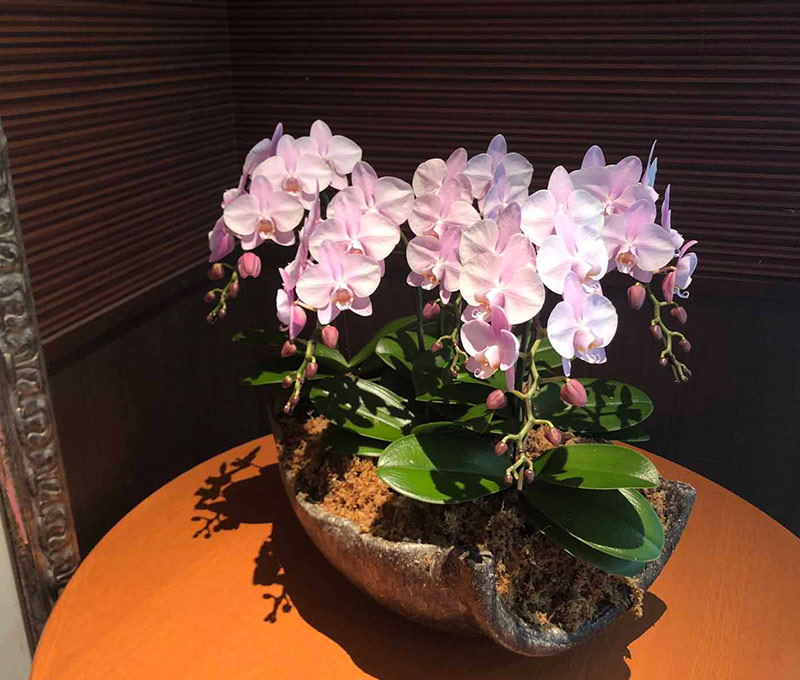 台湾などでは主流の蘭鉢を使用した定期装花です。