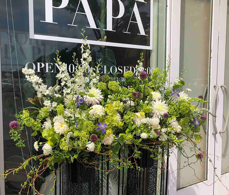 クライアント様の大切な空間に毎週伺い、お花で空間を彩ります。ブランドメゾンや病院、フレンチレストランやカフェやマンション。ご自宅の玄関に自然の命は様々な場所を彩る事が出来きて、そこに毎日いる人の気持ちも和ませ豊かな気持ちにさせてくれます。シーズン毎に季節感を感じて頂けるディスプレイ装花などもデザインいたします。